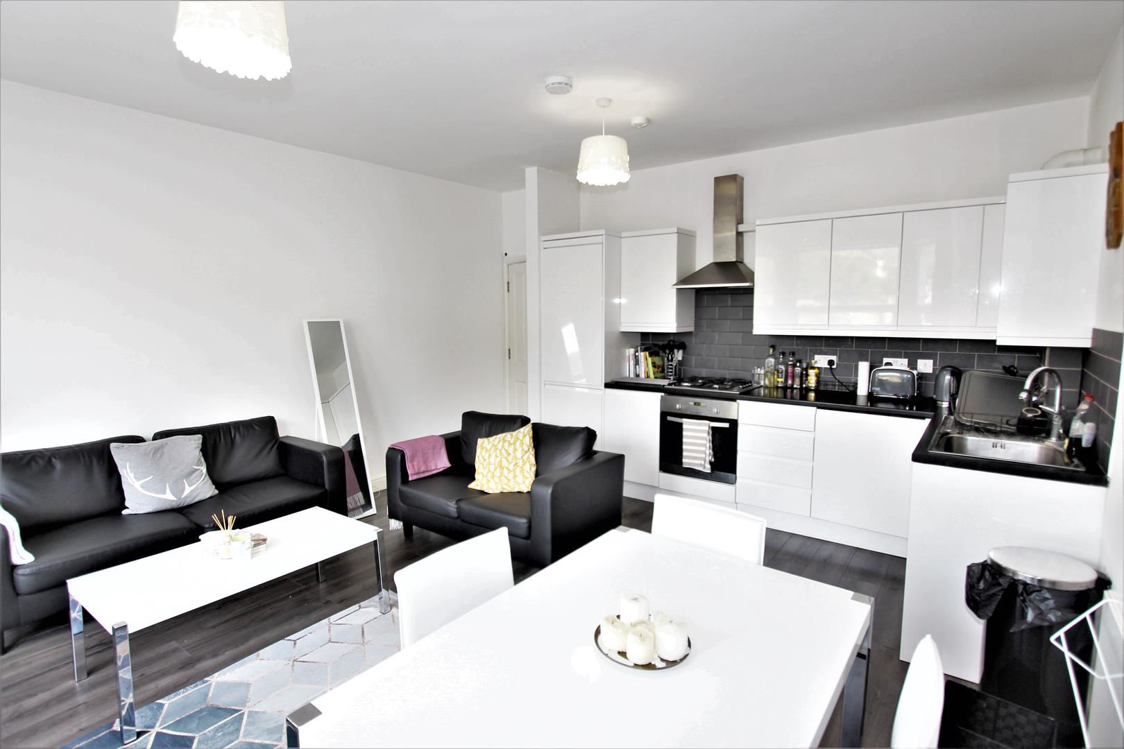 The property consists of two double bedrooms, en-suite shower room, family bathroom, large bright open plan living/dining with modern fitted kitchen and access to own garden.