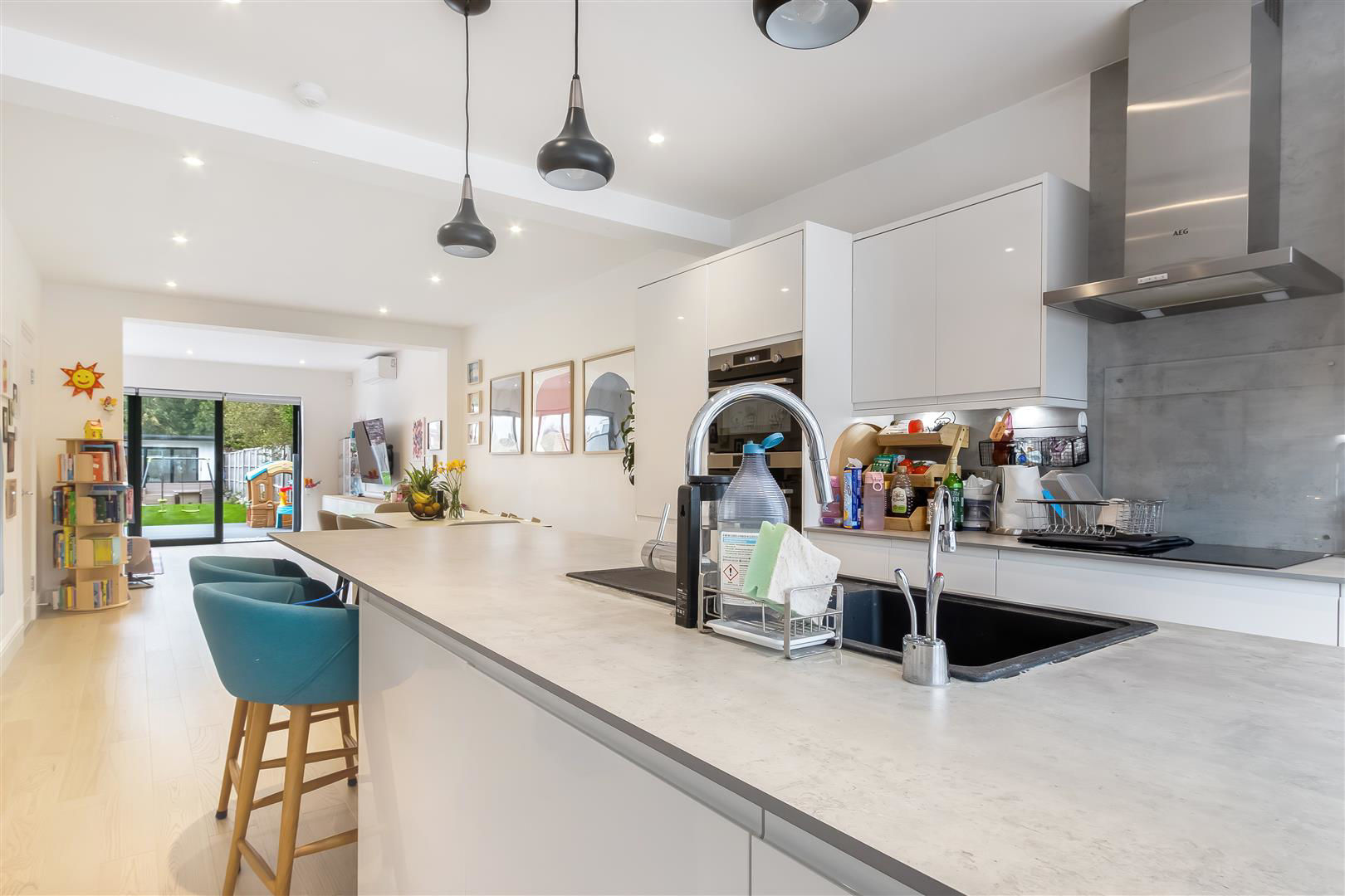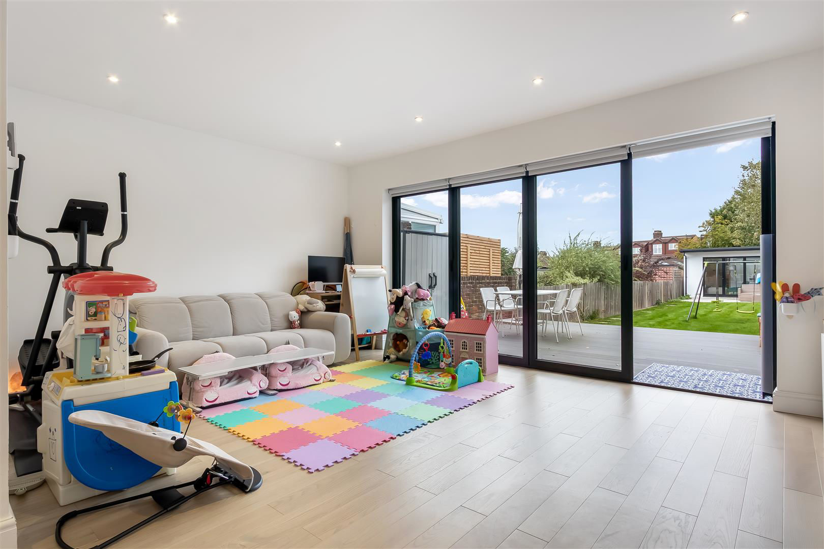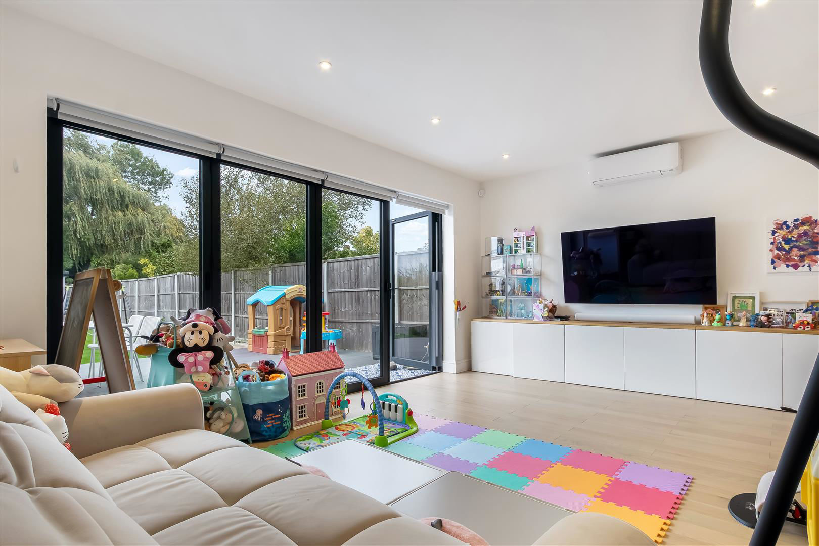 The property has been lovingly reconfigured by the current owners to maximise the space and would suit a large or growing family. The property benefits from air conditioning throughout most of the property, underfloor heating on ground floor, has 2 bathrooms, guest WC, utility room, landscaped rear garden and a spacious rear garden room containing a lounge area, kitchen, sauna, hot tub, shower and is air-conditioned.