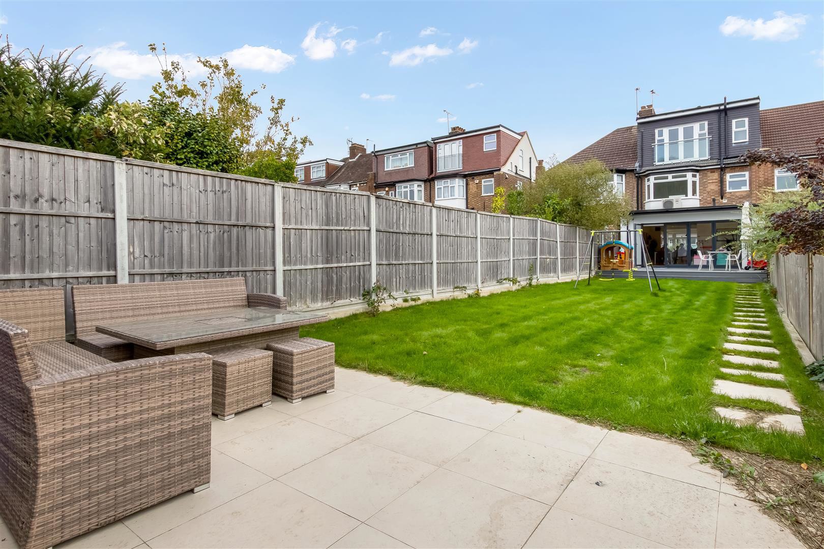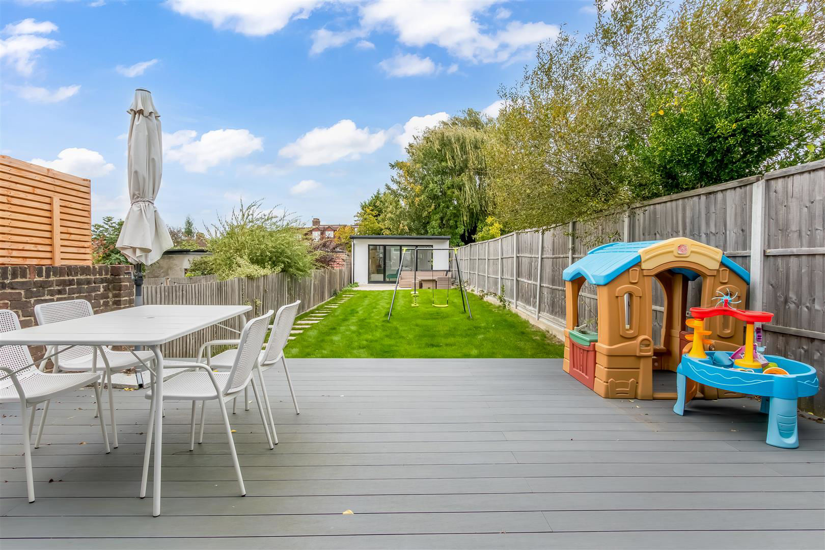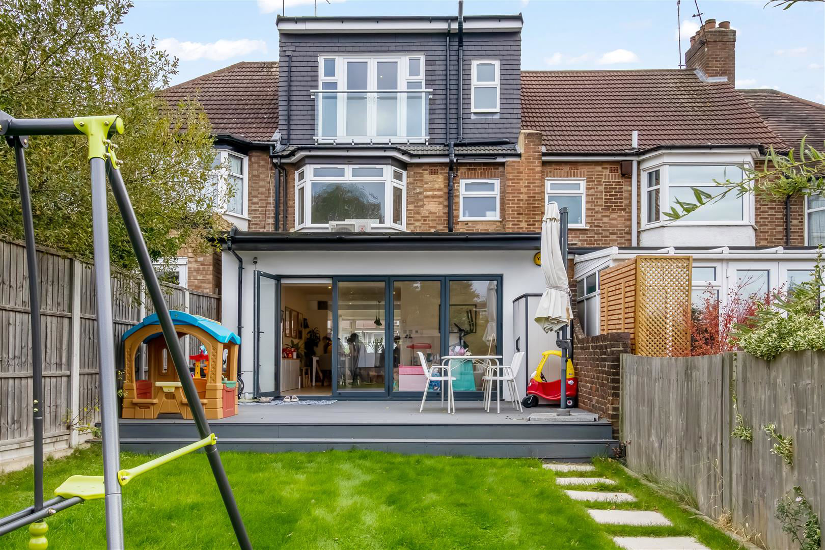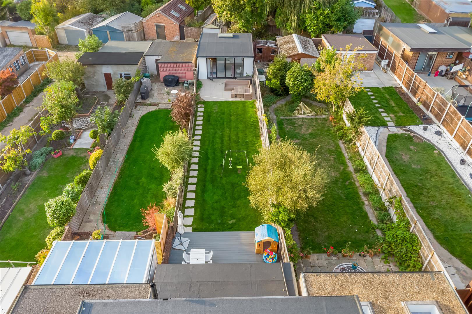 The property has been lovingly reconfigured by the current owners to maximise the space and would suit a large or growing family. The property benefits from air conditioning throughout most of the property, underfloor heating on ground floor, has 2 bathrooms, guest WC, utility room, landscaped rear garden and a spacious rear garden room containing a lounge area, kitchen, sauna, hot tub, shower and is air-conditioned.