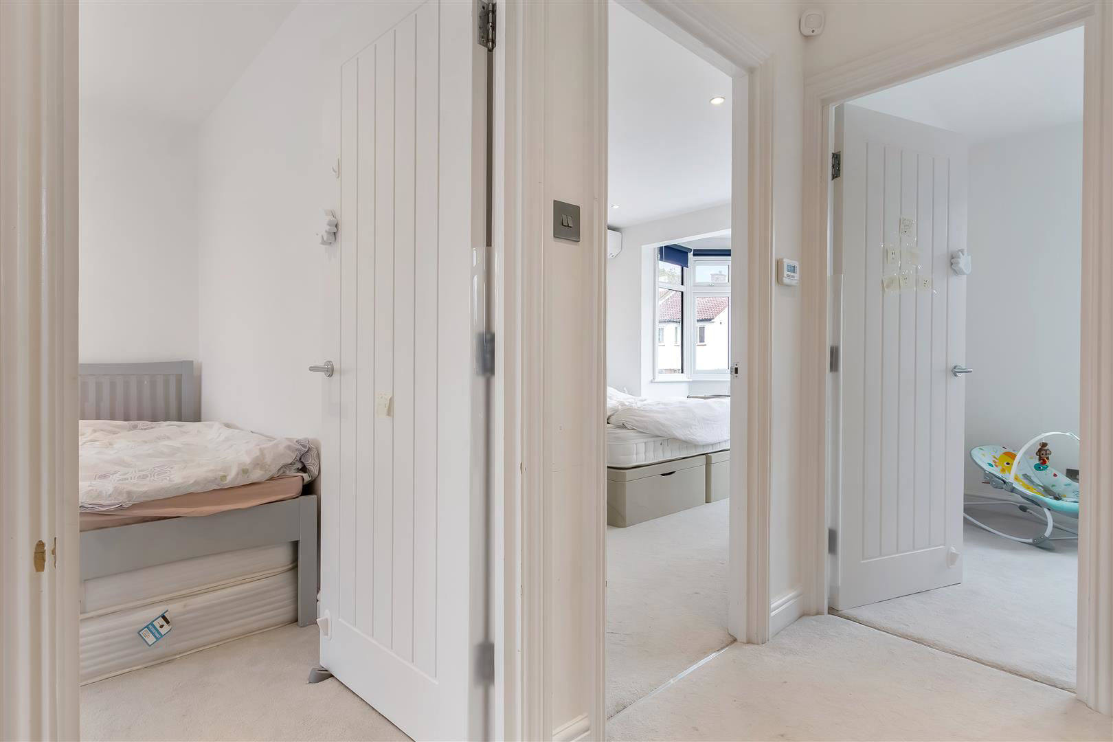 Upstairs two of the bedrooms are generous doubles plus a large single and family bathroom suite. On the top floor there is a guest bedroom with en-suite and a study area/work area. The top floor can also be re-configured into a large master bedroom suite.