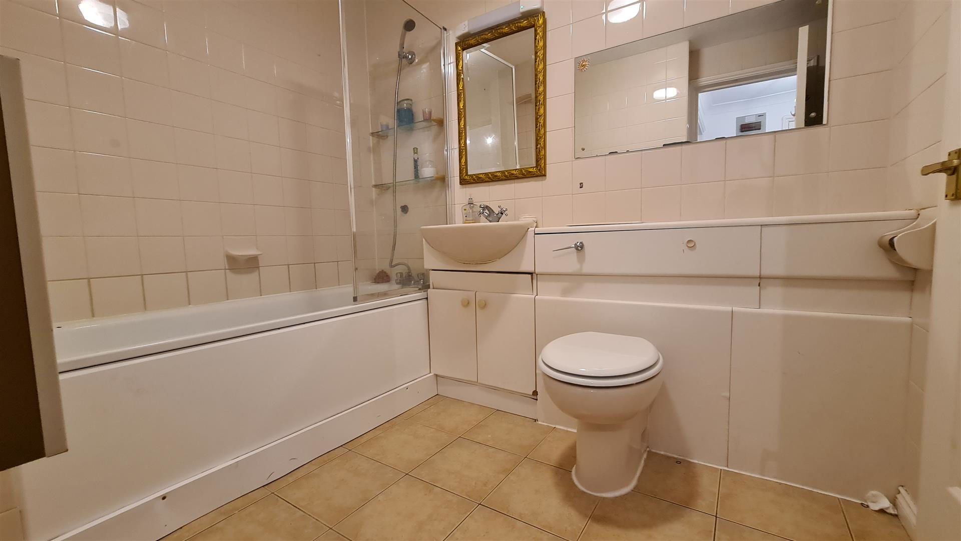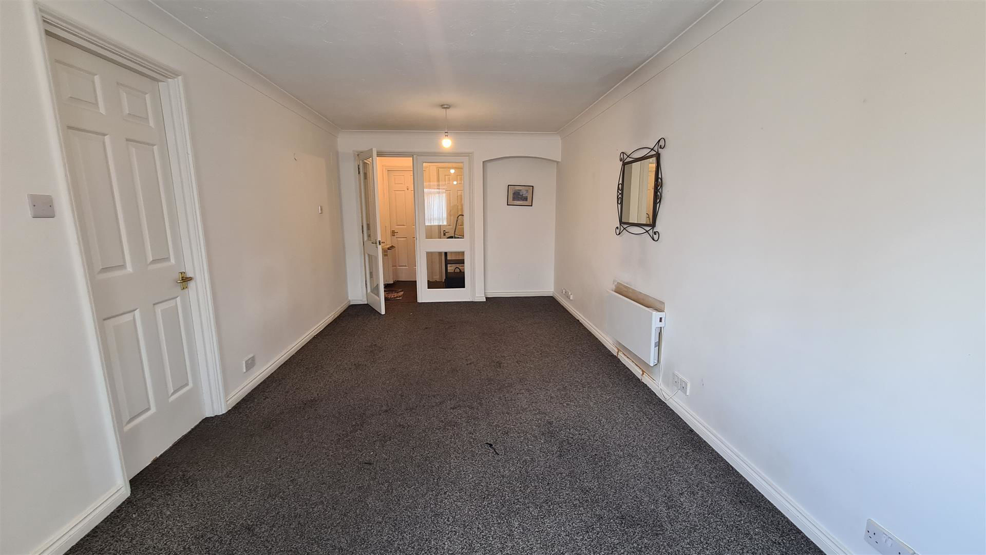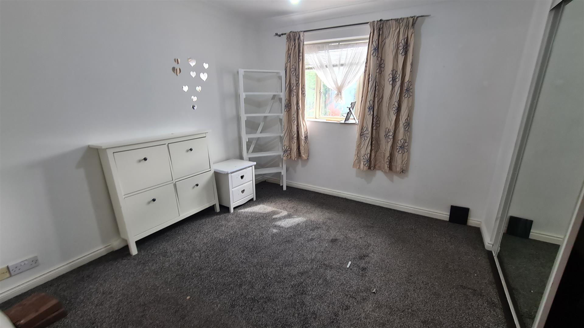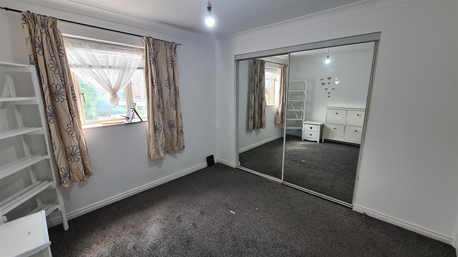 The bedroom, situated at the rear of the flat, offers a peaceful retreat to retire to at the end of the day. Its generous proportions can easily accommodate a double bed and comes with a fitted sliding door wardrobe. A large window fills the room with natural light, creating an airy and inviting space.