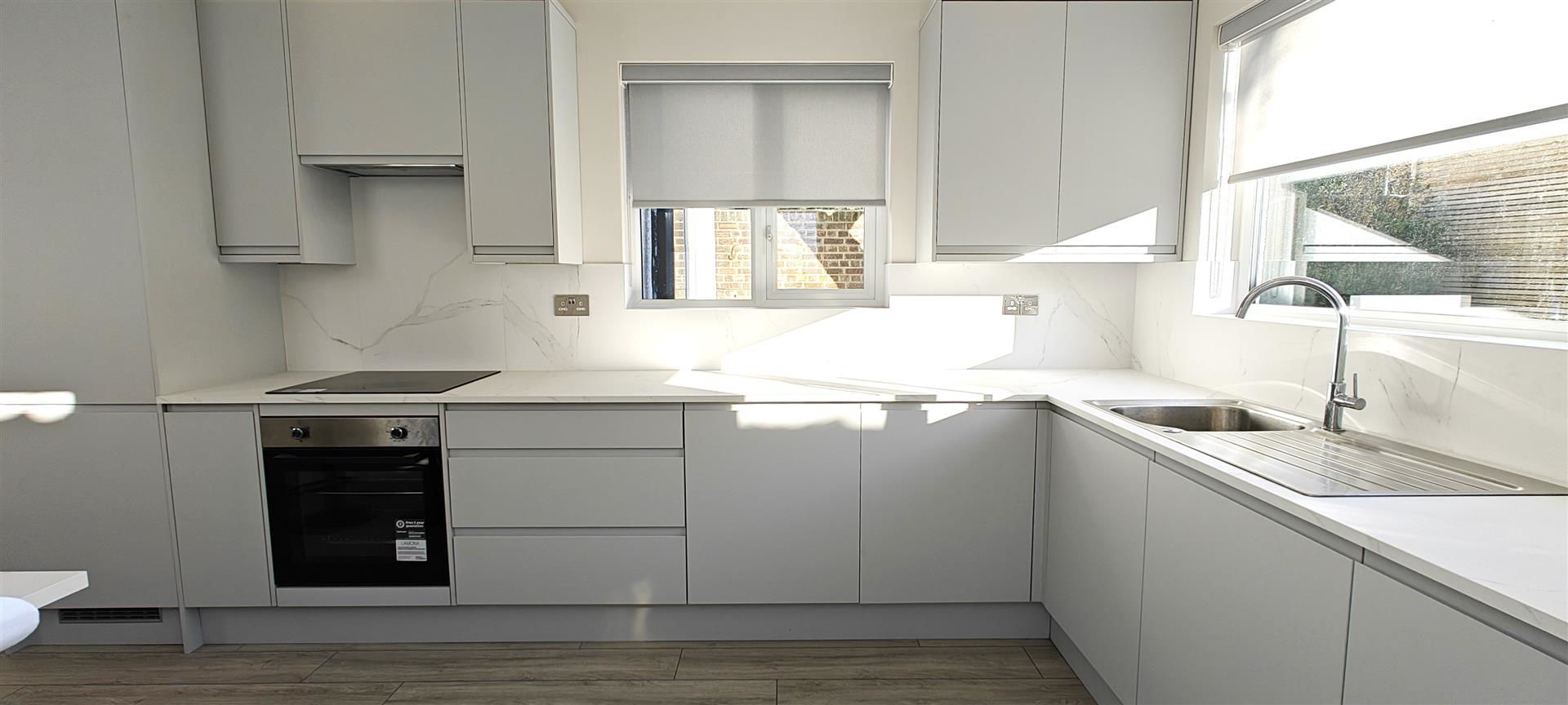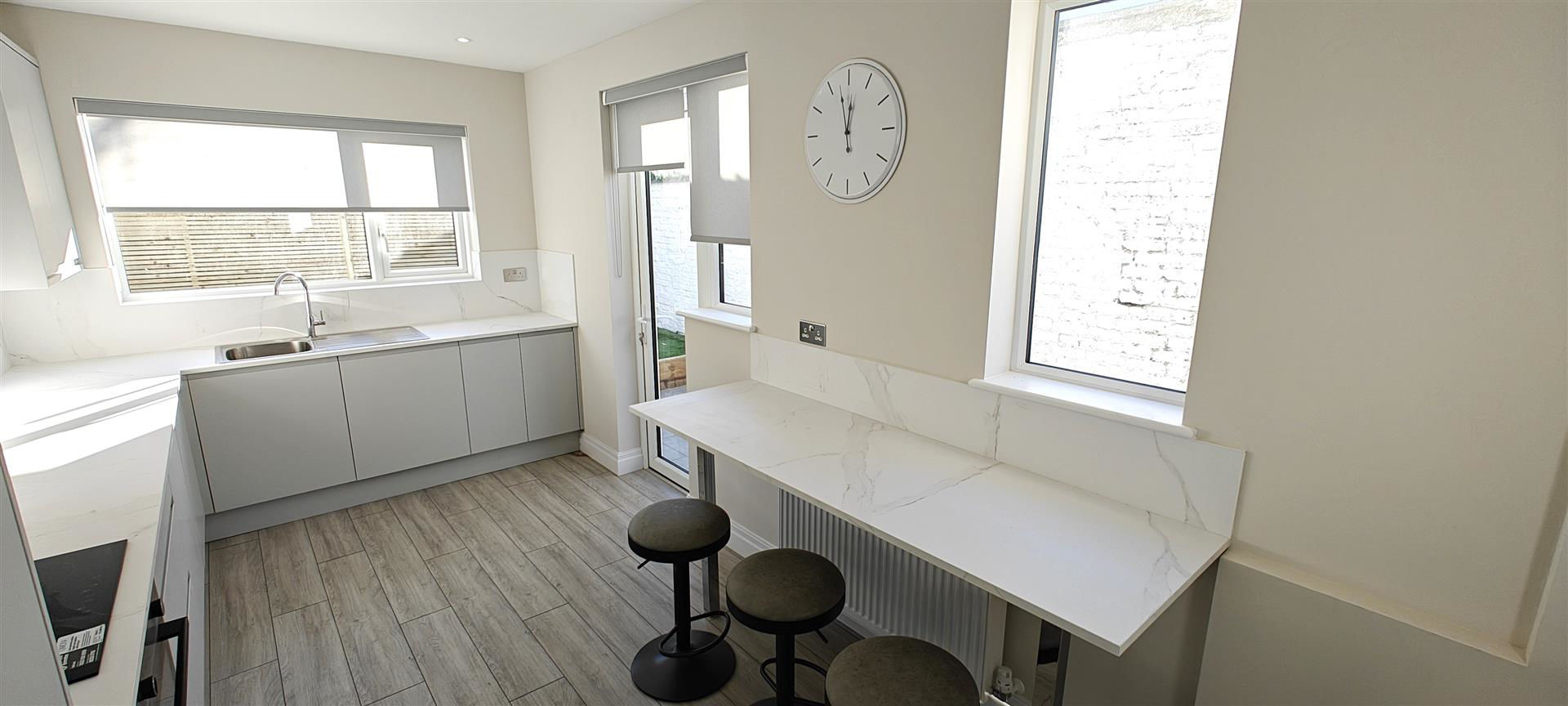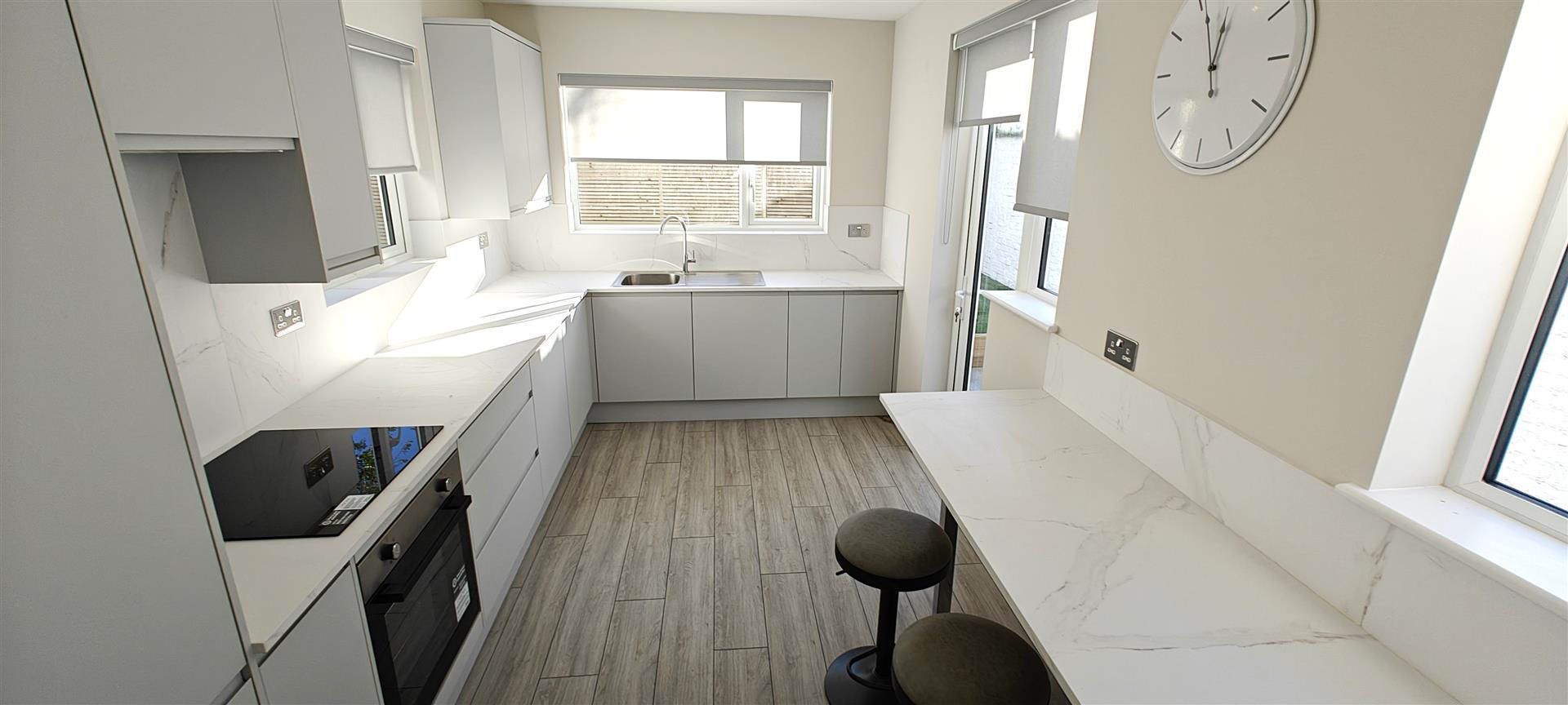 Enviably situated in a sought after residential road, the property has been beautifully refurbished to a very high standard and now benefits from new flooring, new lighting, new bathroom, new fitted modern kitchen with integrated appliances including a full size dishwasher, new boiler + radiators, new carpet and off street parking for 2-3 cars.