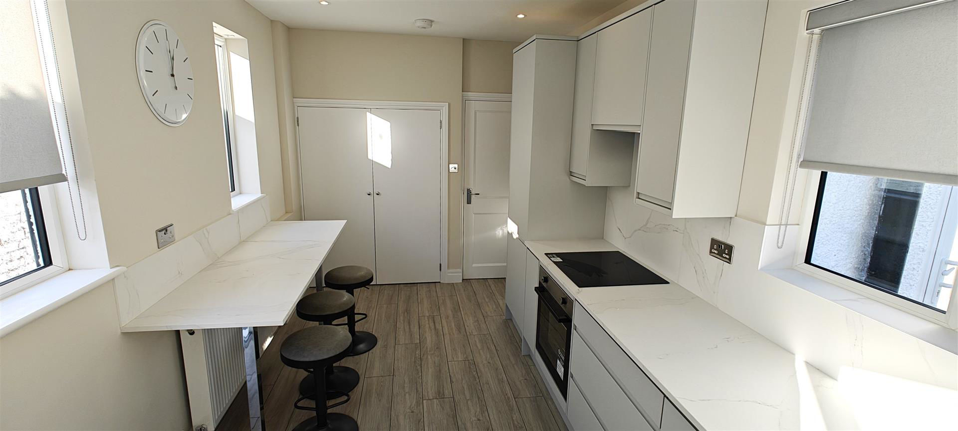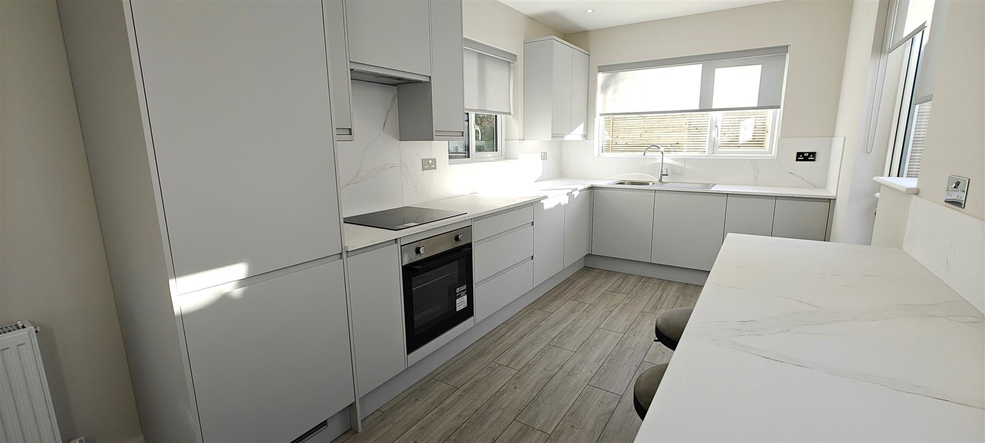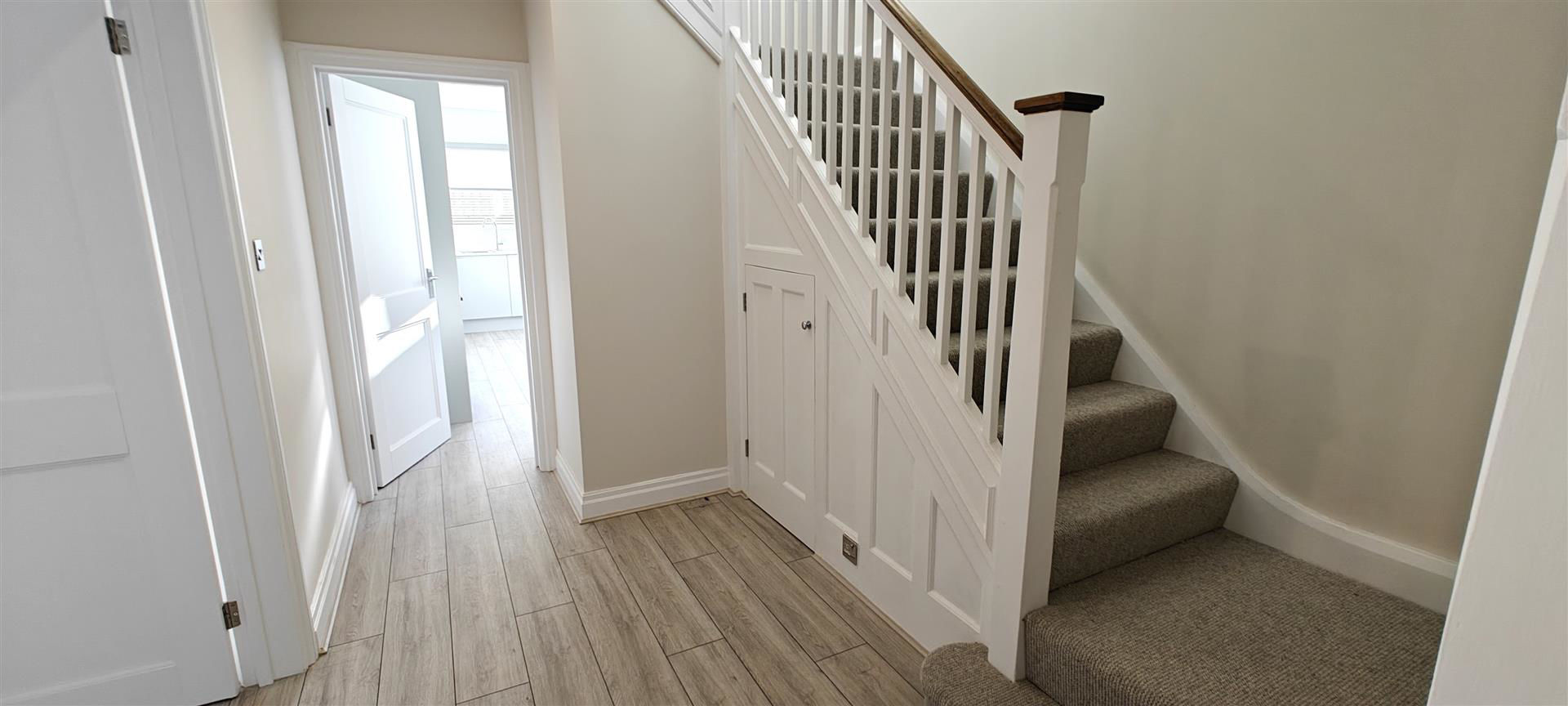 Enviably situated in a sought after residential road, the property has been beautifully refurbished to a very high standard and now benefits from new flooring, new lighting, new bathroom, new fitted modern kitchen with integrated appliances including a full size dishwasher, new boiler + radiators, new carpet and off street parking for 2-3 cars.