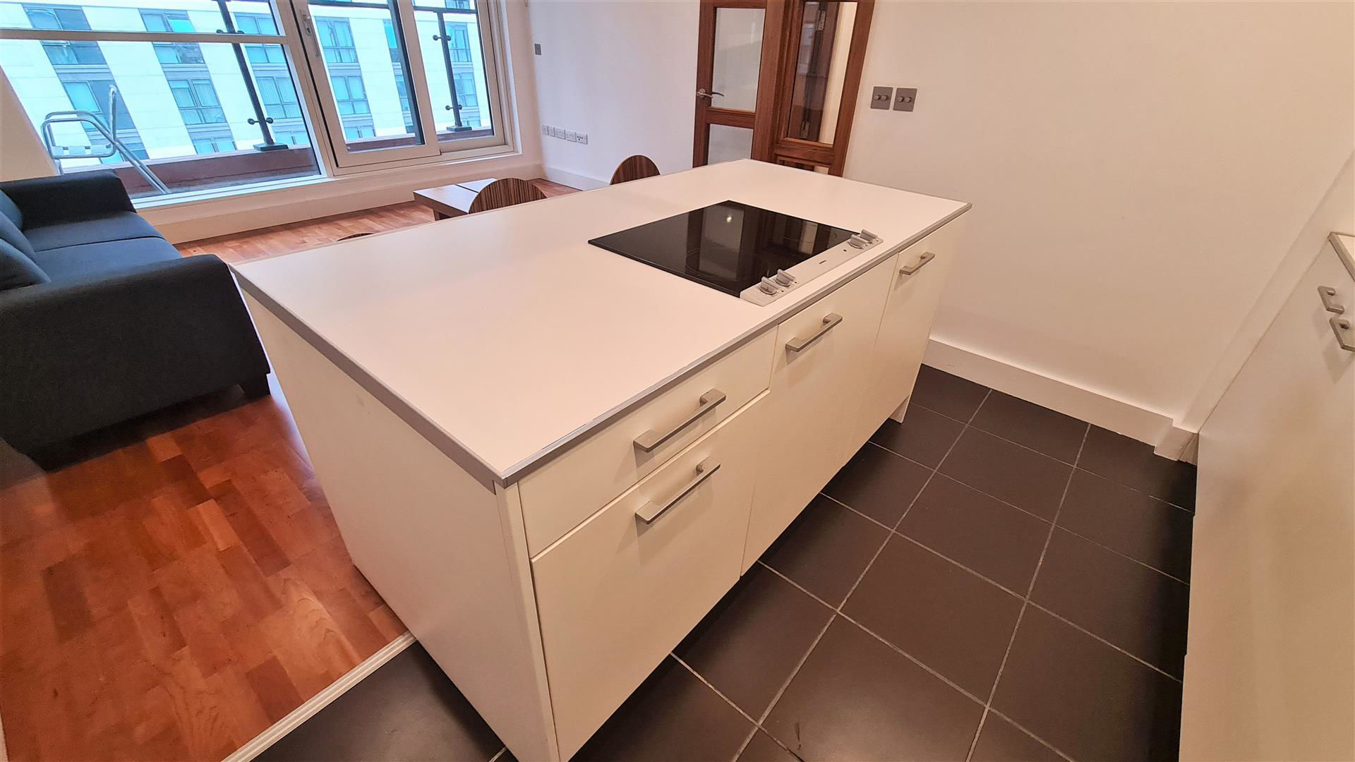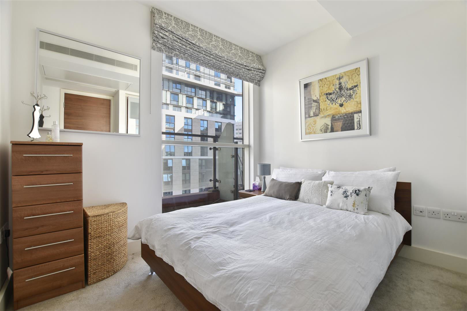 This 478 sq. ft seventh floor apartment consists of an open plan kitchen/reception room with full length floor to ceiling windows leading to Juliet balcony with a quiet westerly aspect over an internal courtyard and views towards the canal, double bedroom also with full length windows along with fitted wardrobes, large storage cupboard and a modern bathroom suite. Further benefits include 24 hour porters, comfort cooling, residents' lifts and secure underground parking.