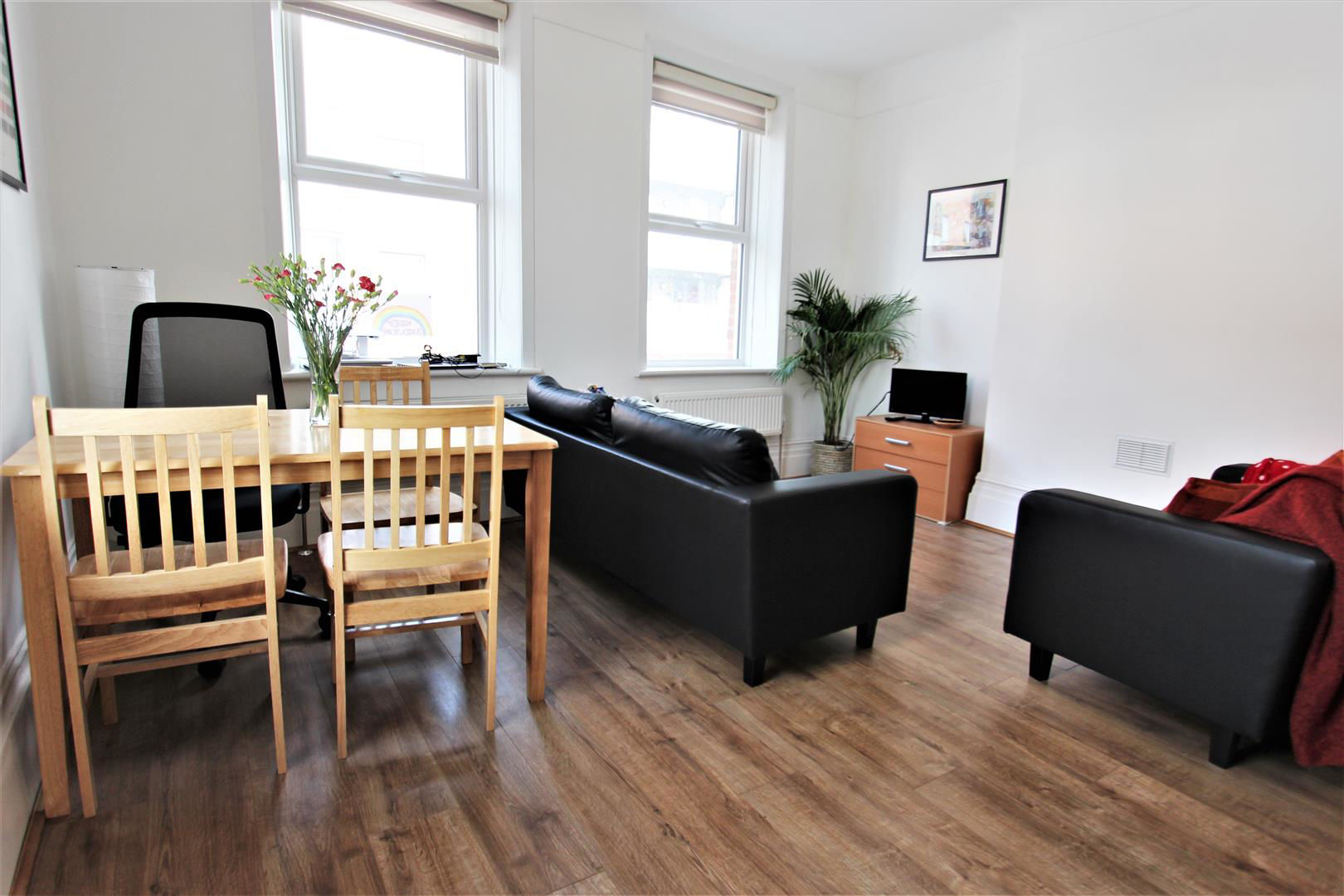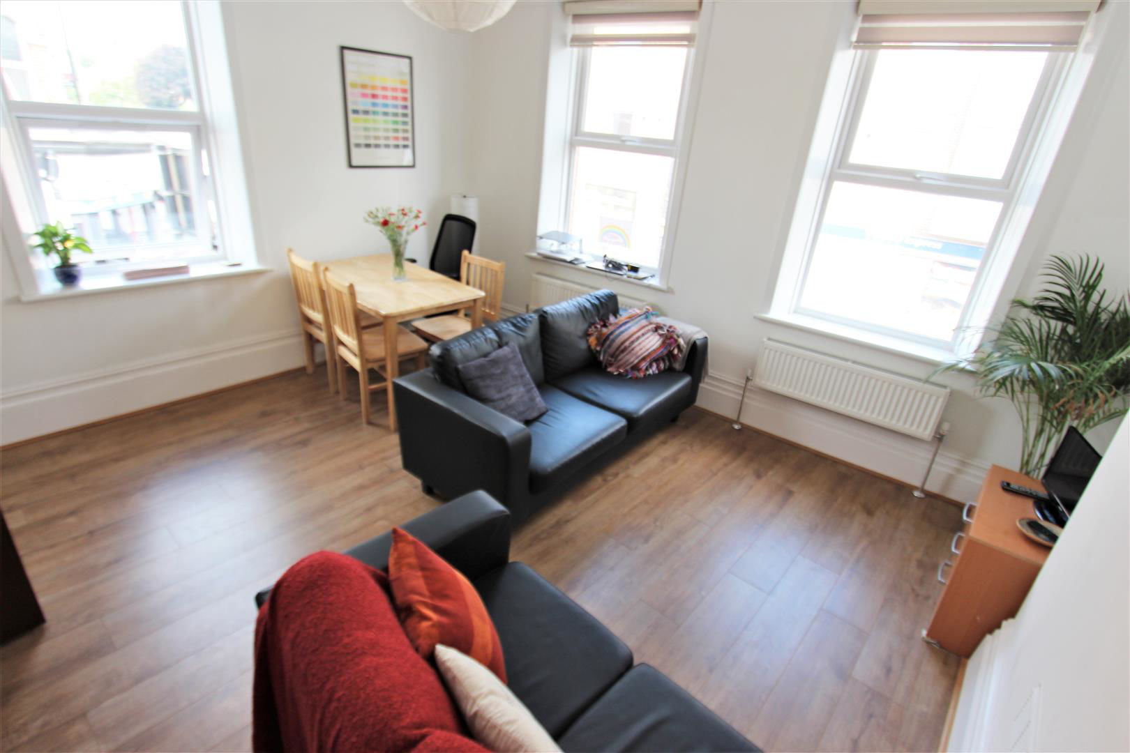 Benefits of this property include wood flooring throughout, a huge separate lounge/dining room, three well sized bedrooms, fully fitted kitchen, tiled bathroom and separate WC. Additionally there is new double glazed windows & new gas central heating. The property is offered on a part furnished basis and no additional furniture will be provided.